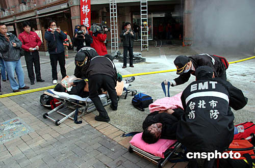 臺(tái)北百年老街——迪化街每年以“臺(tái)北年貨大街”為主題進(jìn)行迎農(nóng)歷新年促銷活動(dòng)。1月17日,臺(tái)北市消防局舉行的消防演習(xí)為這條老街拉開年節(jié)序幕。中新社記者:邢利宇