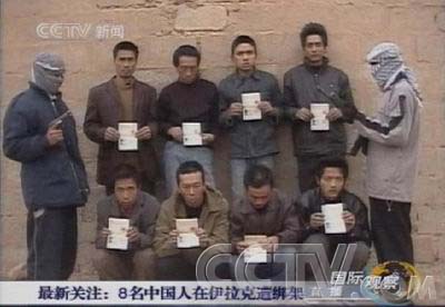 中新網(wǎng)1月18日電 在一盤分發(fā)給數(shù)個(gè)新聞機(jī)構(gòu)的錄像帶中,在伊拉克被綁架的八名中國(guó)工人出現(xiàn)在一間泥屋前,他們向電視鏡頭展示了護(hù)照號(hào)碼。