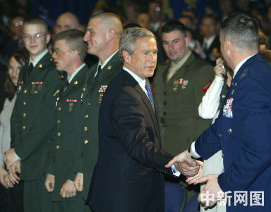 1月18日,布什總統(tǒng)就職典禮慶典活動(dòng)拉開序幕,美國(guó)軍隊(duì)在華盛頓舉行了名為“向軍人致敬”的慶;顒(dòng),美國(guó)總統(tǒng)布什出席并慰問軍事人員。