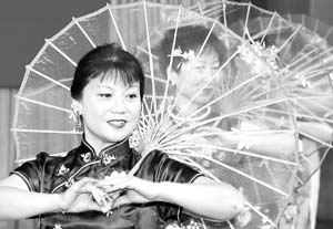 中新網(wǎng)1月19日電 據(jù)人民日?qǐng)?bào)海外版報(bào)道,本月14日在俄羅斯首都莫斯科,幾名婦女在旅俄華僑華人華商新春招待會(huì)上表演花傘舞。