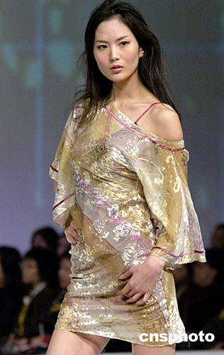 1月19日,香港會(huì)展中心舉行“香港時(shí)裝節(jié)秋冬系列2005”,模特在T型舞臺(tái)演繹“獨(dú)家時(shí)裝表演”專(zhuān)場(chǎng)設(shè)計(jì)師最新服飾系列。作者:洪少葵