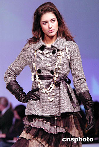 1月19日,香港會(huì)展中心舉行的“香港時(shí)裝節(jié)秋冬系列2005”上,模特在T型舞臺(tái)演繹“獨(dú)家時(shí)裝表演”專(zhuān)場(chǎng)設(shè)計(jì)師作品。作者:洪少葵