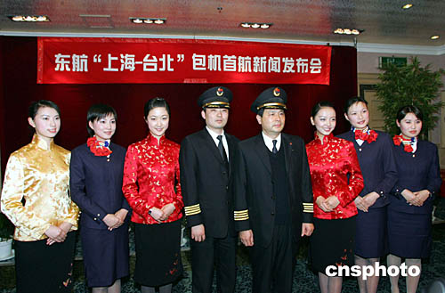 |     一月十九日,東航“上海—臺北”包機飛行的機組人員在上海正式亮相。身著繡滿中國傳統(tǒng)“雙飛蝶”圖案唐裝的東航空姐,將在該包機航班上提供空中服務(wù)。屆時,上海浦東國際機場的值機區(qū)域、頭等艙休息室、VIP和頭等公務(wù)專車等處,安排著唐裝的地面服務(wù)人員也將為旅客提供咨詢引導(dǎo)等服務(wù)。富于濃郁臺灣風(fēng)味的“佳肴”也將出現(xiàn)在航班上。作者:潘索菲
