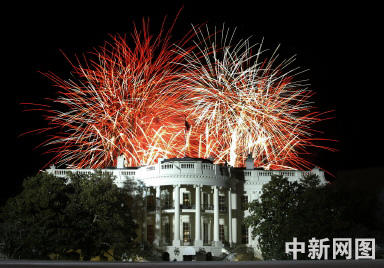 中新社華盛頓一月十九日電(記者余東暉)一月十九日,迎來(lái)今冬第一場(chǎng)雪的華盛頓銀裝素裹。入夜,焰火照亮在白宮上空。雖然寒氣襲人,但在白宮安了暖氣的室外平臺(tái)上,布什夫婦與切尼夫婦在音樂(lè)伴奏下摩拳擦掌,躊躇滿(mǎn)志。布什說(shuō):“歡慶自由,天氣冷又算什么。”