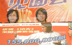 中新網1月21日電 據齊魯晚報報道,《功夫》和《天下無賊》的票房之爭終于以周星馳的勝利落幕,《功夫》憑借已取得的1.55億元內地票房成功突圍《十面埋伏》,超過《天下無賊》,成為去年在內地最賣座的一部影片。昨(20)日,周星馳開心地亮相上海,為《功夫》獲得票房成績慶功,在與眾媒體分享喜悅的同時,周星馳此舉無疑也有為仍在上映的《功夫》再燃一把火的“嫌疑”。