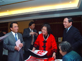 招待會上,來自京城百工坊的4位民間藝術(shù)家為來賓們現(xiàn)場制作了剪紙、泥人、面人和燙畫葫蘆,他們的精湛技藝和精彩表演體現(xiàn)了濃濃的中華特色和民族氣韻,引來客人陣陣喝彩。招待會自始至終洋溢著歡快友好的氣氛。