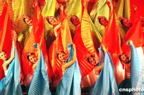 | 春節(jié)即將來臨,由解放軍創(chuàng)作和演出的2005年軍民迎新春文藝晚會“春綠大地情滿懷”正在加緊排練。這臺晚會由解放軍總政治部調(diào)集全軍優(yōu)秀創(chuàng)作人員參與策劃和創(chuàng)作,并由來自全軍文藝團體和解放軍儀仗大隊及武警官兵的近七百名演職員,組成強大的演出陣容。圖為舞蹈演員在排練中。作者:王麗南