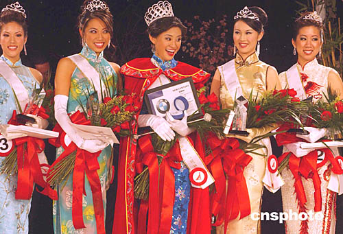 二00五年美國(guó)洛杉磯華埠小姐選美有十六位佳麗登臺(tái),十五號(hào)選手是在北京出生長(zhǎng)大的馮倩。她清秀端正的相貌和亭亭玉立的身材,無論是青春裝的活力運(yùn)動(dòng),泳裝的肌膚表現(xiàn),旗袍的曲線展示,還是晚裝的含蓄優(yōu)雅,均出類拔萃。