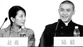 《情人結》的首映活動在昨日下午2時拉開,記者們都沖著趙薇而去,整個發(fā)布會剛開始就是趙薇和陸毅為6對新人做伴娘伴郎的“戲”,這種形式自然讓記者們“眼前一亮”。在現(xiàn)場,為了不搶新郎新娘的風頭,趙薇與陸毅以一身樸素的裝束出場。他們更帶來一瓶紅酒,為6對新人統(tǒng)統(tǒng)斟上,然后為他們切下蛋糕。在主持人李霞等的串場下,在婚禮進行曲中,新郎新娘接吻、交換信物……現(xiàn)場氣氛相當熱鬧,新人臉上也是寫滿了幸福,有新娘被感動得流淚,稱這是自己一生最難忘的最激動的事情。對于這樣一對明星伴郎伴娘記者們自然是狂拍不停,不過大家爭搶鏡頭讓現(xiàn)場一片忙亂,還險些打了起來。