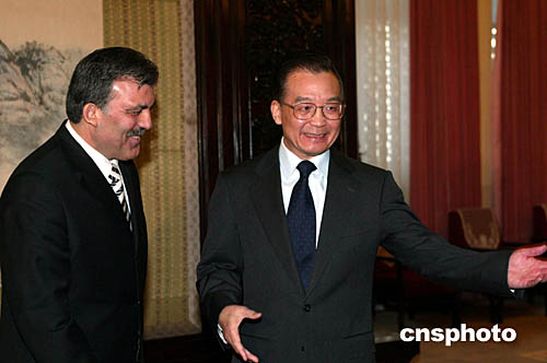 溫家寶晤土耳其副總理兼外長就兩國關系交換意見