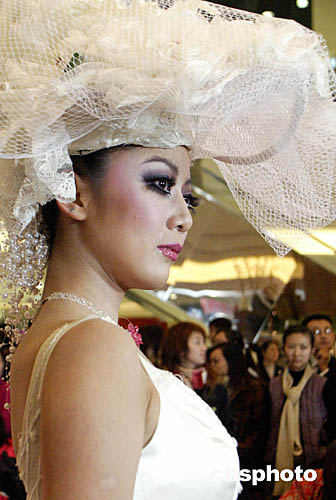 中國傳統(tǒng)春節(jié)將至,北京商家推出多種迎新春促銷活動(dòng),在京城一商廈舉行的新春服飾秀上,模特展示新款婚紗服飾。中新社記者:錢興強(qiáng)
