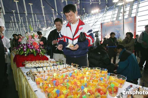 二月五日上午,東方航空公司為搭乘臺灣中華航空臺商春節(jié)包機的CI——五八五號航班返臺過年的旅客,準備了精美食品。作者:湯彥俊