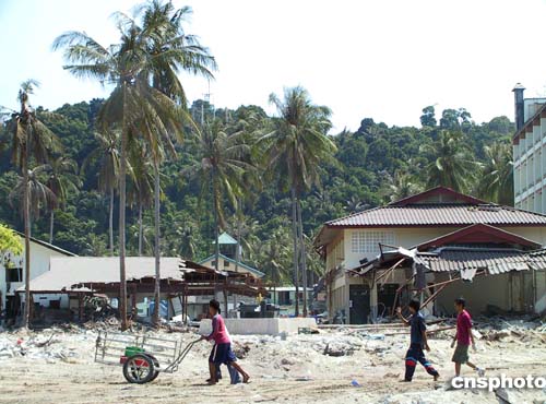 圖:泰國海嘯重災區(qū)需清理七千噸垃圾