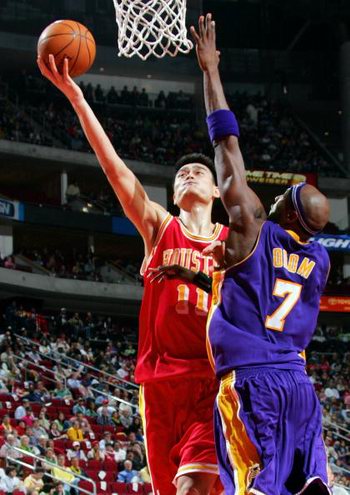 中新網(wǎng)2月7日電 北京時間2月7日凌晨,NBA常規(guī)賽繼續(xù)進(jìn)行,在豐田中心進(jìn)行的比賽中,比賽結(jié)束前15.3秒,姚明關(guān)鍵的兩次罰球命中,使得火箭反超比分,在主場以103-102戰(zhàn)勝洛杉磯湖人,取得四連勝,而湖人則遭遇兩連敗。姚明出場35分鐘,18投9中拿下全隊最高的23分,另外還得到8個籃板、4次封蓋。