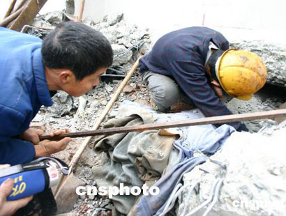 本社記者今天中午趕到事故現(xiàn)場看到,摔得變形的鋪軌車橫臥在地,碎裂的石梁、石塊滿布周圍,發(fā)生事故的橋墩至少有二十米高。消防人員和鐵路建設工人正努力在堆積的亂石中搜尋遇難者的遺體。部分當?shù)卮迕褚嗉尤氲搅司仍辛兄,抬著擔架隨時待命、手執(zhí)鐵鍬幫助消防人員清理現(xiàn)場、親手刨開亂石搜尋遇難者遺體……
