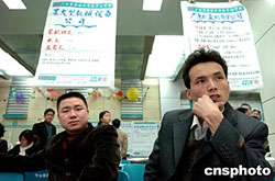 中新網(wǎng)2月17日電 金羊網(wǎng)—新快報(bào)報(bào)道,春節(jié)過后,廣州市首場(chǎng)人才招聘會(huì)再次出現(xiàn)火爆場(chǎng)面。記者昨天從南方人才市場(chǎng)舉行的大型綜合招聘會(huì)上獲悉,昨日一天就有8000多人到南方人才市場(chǎng)求職,其中應(yīng)屆畢業(yè)生成了主角。另外,從昨天開始至下月27日,廣州市將連續(xù)39天舉行招聘會(huì)。
