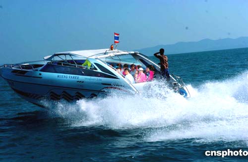 16日的泰國布吉島海面上風平浪靜,游船上的情緒高昂,盡情享受大自然風光。海嘯地震過后,到這里旅游的客人日益增多,當?shù)芈糜螛I(yè)正在逐步復蘇。作者:宋吉河