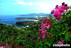 2月中旬的泰國布吉島三海風光旅游區(qū),風和日歷,絢麗的山花映襯著碧藍的大海,展現(xiàn)出一幅美麗畫卷。