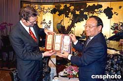 二月二十三日晚,廣州市人民政府在花園酒店接見瑞典哥德堡市訪問廣州代表團(tuán),就“哥德堡號仿古商船”2006年復(fù)航中國廣州進(jìn)行考察論證。作者:劉衛(wèi)勇