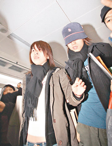 昨午十二時(shí)五十分,機(jī)場(chǎng)離境大堂的顯示牌顯示言承旭所乘班機(jī)的搭客該由離境大堂的B閘步出,豈料他卻在A(yíng)閘出現(xiàn),過(guò)百名在B閘等候已久的歌迷獲悉后,即以極速?gòu)腂閘飛奔到A閘迎接,期間他們更一邊跑一邊大叫偶像名字,場(chǎng)面十分震撼。言承旭一貫地頭戴漁夫帽,面帶笑容表現(xiàn)友善,不時(shí)回頭向歌迷報(bào)以微笑。