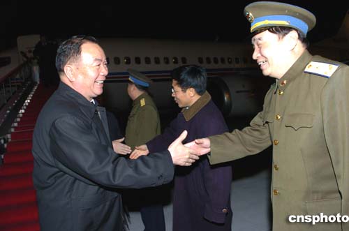 三月二日,參加十屆全國(guó)人大三次會(huì)議的各地代表陸續(xù)到達(dá)北京,中共中央政治局委員、新疆自治區(qū)黨委書記王樂(lè)泉(左)率新疆代表團(tuán)乘專機(jī)抵達(dá)北京西郊機(jī)場(chǎng)。作者:陳文