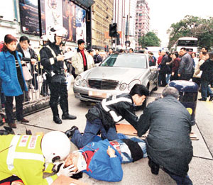 袁潔瑩昨晨十一時(shí)許,駕駛銀色平治房車沿漆咸道南向尖沙咀行駛,途至金馬倫道對開交通燈位時(shí),一名五十二歲菲籍女子突然由行人路道走出欲過馬路,F(xiàn)ennie剎車不及將對方撞倒地上,她立即停車報(bào)警。