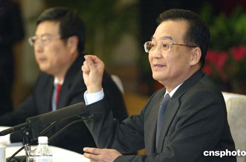 三月四日,國務院總理溫家寶來到全國政協(xié)經(jīng)濟界、農(nóng)業(yè)界、工商聯(lián)界委員下榻的北京鐵道大廈,在聯(lián)組討論會上聽取委員建議并發(fā)表講話。作者:廖文靜
