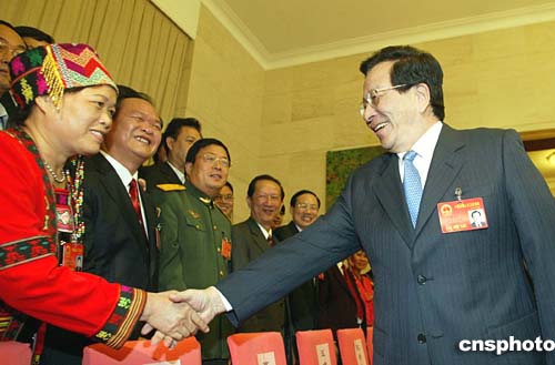 圖:曾慶紅與海南省代表一起審議政府工作報告