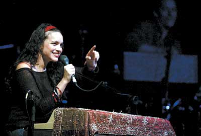 中新網(wǎng)3月8日電 據(jù)北京娛樂信報(bào)報(bào)道,昨(7日)晚,美國(guó)爵士樂小天后諾拉·瓊斯在工人體育館舉行了她在北京的首場(chǎng)個(gè)人演唱會(huì)。