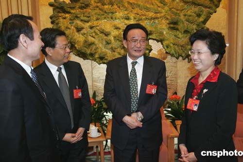 黃菊今天來到廣西代表團(tuán),同代表們一起參加了審議。