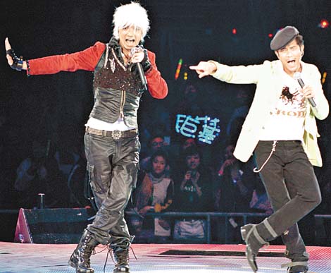 中新網(wǎng)3月11日電 據(jù)《東方日?qǐng)?bào)》報(bào)道,古巨基演唱會(huì)前晚邀請(qǐng)了郭富城做嘉賓,兩人在臺(tái)上斗跳勁舞,掀起全場(chǎng)高潮,基仔還笑言在城城身上“采陽(yáng)補(bǔ)陰”,學(xué)成一身舞技,城城搞笑回應(yīng):“怪不得我現(xiàn)在變的這么瘦了”令全場(chǎng)大笑。