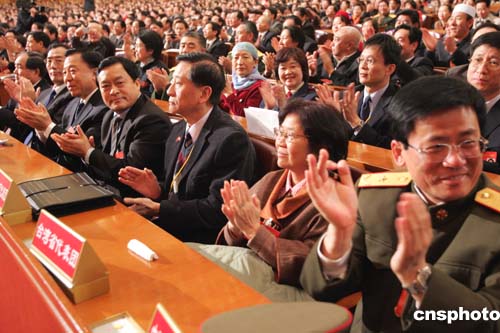 代表們鼓掌祝賀《反分裂國家法》高票通過。作者:毛建軍