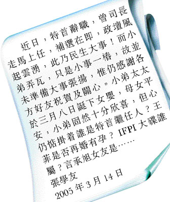 學(xué)友在聲明上先說出大家關(guān)心的社會大事,然后才承認(rèn)女兒于三八婦女節(jié)出世,母女平安,最搞笑是他說:“小弟弄瓦,只是小事一椿……小弟固然十分欣喜,但心仍惦掛誰是特首繼任人?王菲是否再婚有孕?IFPI大碟誰屬?言承旭女友是……”平日說話沉實(shí)的學(xué)友,突然來個大幽默,令人大為意外,而他終于如愿再添丁,大家也為他高興。