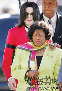 上周四,邁克爾因?yàn)槲茨軠?zhǔn)時(shí)到法庭,被威脅有入獄的危險(xiǎn),當(dāng)他終于到法庭時(shí),外套里是一件體恤衫,下身則是一條睡褲。本周一,杰克遜到得很準(zhǔn)時(shí),穿得也很精神:紅色夾克衫,黑色臂章,黑色長(zhǎng)褲,在父母的陪同下走進(jìn)法庭。