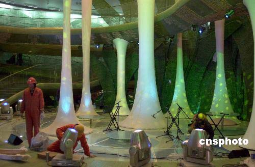 日本愛知世博會(huì)即將開幕,中國館內(nèi)工作人員三月二十一日對館內(nèi)的主造型《生命之樹》進(jìn)行最后整備。作者:王健