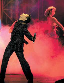 《胭脂扣》有一場戲,是醇酒美人;ǹ蛡兌寂e杯與那紅牌阿姑一干,鏡頭對準(zhǔn)了女主角,她惟有干了。雖然是茶,但每回仰首而盡,五六回之后,也真難受。而一桌的演員呢,有喝了的,有喝一兩口的,也有沾沾唇而已。不知在第幾回了,我留意到男主角(張國榮)總是把那道具酒也干了,然后意亂情迷。當(dāng)導(dǎo)演一喊“CUT”,他便把口中的酒,回吐于酒杯中。下一回,又換一杯,重新意亂情迷。其實(shí)每當(dāng)拍到飲食場面的戲時,除了新丁,誰都不會來真的。這番卻特別的感覺到了,主要因?yàn)樗摹白藨B(tài)”,他若無其事,不動聲色,乘人不覺。一秒鐘之前,他還要以為這真是世上最好的酒、最好的人。戲還是戲,未了便悄悄地抽身退出,戲只是戲。虛幻的,像假的醇酒,惟在道具中打轉(zhuǎn),不可能留于胃內(nèi)反芻。