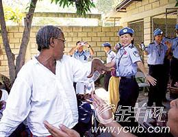 高曉嵐是防暴隊的女戰(zhàn)斗隊員,來自北京市公安局海淀分局,去年11月31日,她和十幾名隊員到駐地附近一家教會慈善學(xué)校和老人活動點,開展社區(qū)警務(wù)活動。見到中國維和警察,老人們高興地鼓著掌、唱著歡快的歌迎接他們,蒙古族的高曉嵐為老人們動情的歌聲所感染,不由自主地在歌聲中跳起了蒙古族舞蹈。這時,一位老太太突然走出人群,一邊唱著一邊與她一起翩翩起舞。老人是那樣的熱情和奔放,她倆在周圍更加激越的歌聲和掌聲中忘我地跳著……