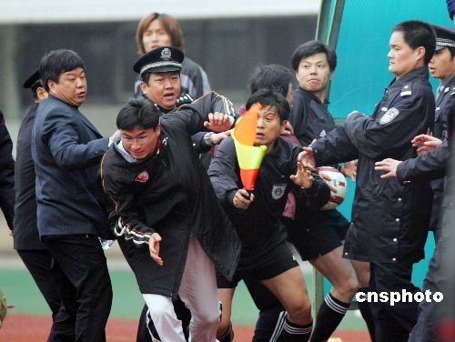 中新網(wǎng)3月28日電 解放日?qǐng)?bào)消息,在發(fā)生了球場(chǎng)暴力事件后,上海足協(xié)昨天決定,對(duì)前天在足協(xié)杯比賽中攻擊主裁判楊志強(qiáng)的九城俱樂(lè)部進(jìn)行嚴(yán)厲處罰。