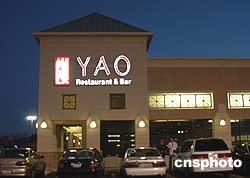 姚明在美國(guó)NBA發(fā)展如日中天,三月下旬,姚明父母開(kāi)設(shè)的“姚餐廳”也在火箭隊(duì)大本營(yíng)休斯敦西區(qū)一個(gè)購(gòu)物中心開(kāi)張。這個(gè)面積超過(guò)一千平方米,投資一百五十萬(wàn)美元的餐廳包括中餐館和酒吧兩部分,裝修豪華,里面陳設(shè)了許多姚明的照片;餐廳設(shè)置了大屏幕電視,可觀看NBA現(xiàn)場(chǎng)直播,吸引了許多“姚明迷”。作者:余東暉