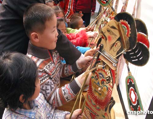 三月二十九日,鄭州一小學(xué)幾名孩子在老師指導(dǎo)下,學(xué)習(xí)擺弄傳統(tǒng)皮影。皮影戲產(chǎn)生于西漢民間,如今日漸失傳。河南鄭州民間皮影戲劇藝術(shù)家為搶救這種稀有的民間文化藝術(shù),聯(lián)合了幾家中小學(xué)校,讓皮影戲走進(jìn)校園。作者:慎重