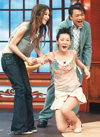 有趣的是,徐若瑄當(dāng)年曾在日本“火焰大挑戰(zhàn)”里秀過國際標(biāo)準(zhǔn)舞,小S術(shù)業(yè)有專攻,也曾苦練過國標(biāo)舞,還參加過觀摩賽,當(dāng)場興起拉著蔡康永在徐若瑄面前秀一段,沒想小S一個滑步往蔡康永胯下鉆去時,蔡康永拉不動她,當(dāng)場摔了一跤,裙擺飛揚露出底褲,正當(dāng)大家以為小S不慎穿幫時,她說:“里面是安全褲,別想太多!