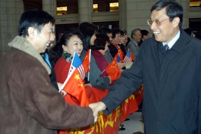 三日中午,在華盛頓聯(lián)合火車站,周文重大使偕夫人謝淑敏受到中國駐美使館外交官、大華盛頓地區(qū)僑學(xué)界代表、美國國務(wù)院助理國務(wù)卿幫辦薛瑞福以及禮賓司官員的熱烈歡迎。