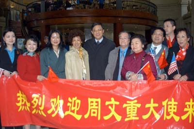 周文重是第八任中國駐美大使。他的前任楊潔篪已于三月六日離任回國。完