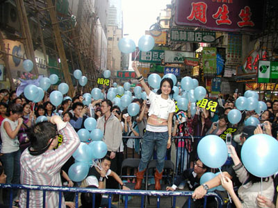 簽名會(huì)期間,突然有一位男歌迷向她求婚,令祖兒有點(diǎn)尷尬,不知所措。這位叫“阿榮”的歌迷,當(dāng)眾跪下向她求婚,與他同來的一位友人,就替他拿著一張寫滿了對(duì)Joey愛的情信,這位歌迷更是有備而來,準(zhǔn)備了戒指作為求婚之用。主持人問到Joey是否第一次收到求婚戒指,她笑言:“都不知道收到多少啦!哈哈!笔潞髥柕剿袥]有被他的舉動(dòng)嚇驚?她坦言有點(diǎn)驚,但因她的歌迷過去都有不同方式向她示愛,千奇百怪,而且很猖狂,早就慣了面對(duì)。記得曾有歌迷送了一個(gè)金牌給她,上面寫著“對(duì)你的愛永不完”,亦有位歌迷寄了一張請?zhí)o她,上面的名字竟然是Joey和那位男方的名字。