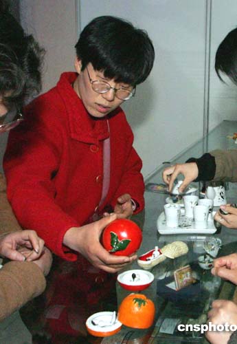 新近在上海著名的旅游風(fēng)景區(qū)——浦東陸家嘴觀光隧道內(nèi),一種顯示男女歡愛動(dòng)作的、號稱“嫁女壓箱底”之物的旅游紀(jì)念品吸引了游客視線,它也是正在該地舉行的“中華性文化展覽”紀(jì)念品之一。圖為兩位中年婦女正在精心挑選該旅游紀(jì)念品。作者:潘索菲