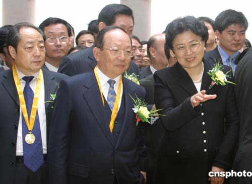 “乙酉年清明公祭軒轅黃帝典禮”4月5日在陜西橋山黃帝陵舉行,全國人大常委會(huì)副委員長許嘉璐,全國政協(xié)副主席、中央統(tǒng)戰(zhàn)部部長、中華海外聯(lián)誼會(huì)會(huì)長劉延?xùn)|,中國國民黨中常委蔣孝嚴(yán)共同祭拜中華民族始祖黃帝。圖為在軒轅殿劉延?xùn)|向蔣孝嚴(yán)介紹黃帝陵整修情況。作者:田地
