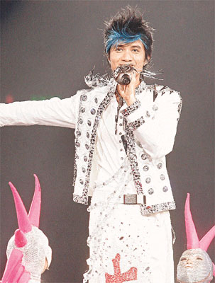中新網(wǎng)4月7日電 據(jù)香港媒體報(bào)道,昨晚在紅館舉行《勁歌金曲演唱會(huì)Part 2》的古巨基,全場(chǎng)爆滿!演唱會(huì)在八時(shí)三十五分開始,由Cookies的成員Kary擔(dān)任表演嘉賓,現(xiàn)場(chǎng)還有周慧敏及另一Cookies成員Theresa前來(lái)捧場(chǎng);幸蝗鏟art 1演唱會(huì)一樣,戴上面罩出場(chǎng)高唱?jiǎng)臜it歌《必殺技》,但基仔唱至最高音部分竟然走音。