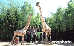 在鄭和故里云南晉寧的鄭和公園里建有一處占地近三千平方米的泥塑珍禽異獸園。園內(nèi)根據(jù)鄭和下西洋期間,亞非各國(guó)向明王朝朝貢以及鄭和船隊(duì)帶回國(guó)的珍禽異獸泥塑而成,有鄭和船隊(duì)從泰國(guó)帶回國(guó)的六足龜、麒麟(長(zhǎng)頸鹿)、花福祿(斑馬)等,神態(tài)逼真、栩栩如生。作者:蔣振江
