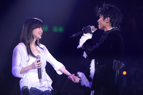 中新網(wǎng)4月8日電 據(jù)香港《大公報(bào)》報(bào)道,古巨基演唱會(huì)前晚于紅館揭幕,當(dāng)晚最難得就是“基仔”請(qǐng)來(lái)好友周慧敏(vivain)助陣。vivain最初只是座上客,沒(méi)想到“基仔”借助觀眾的威力把她拉出場(chǎng),二人合唱一曲《流言》,贏盡觀眾掌聲。