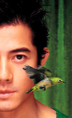 拍攝當日,上海正值嚴寒夜,偌大的影樓更顯得寒氣逼人,當人人身穿羽絨,唯獨城城背心一度,把他冷得手腳僵硬,大家見狀,急忙張羅暖風機圍著“城城”,讓他取暖。原本有準備長袖綠衣造型,但愛漂亮的“城城”堅決穿背心上陣。至于何以選用綠色與青鳥作今次海報的主調?“阿叔”表示:“因為綠色是今年流行的顏色,至于青鳥,可以是喜鳥,也可以是躍動,可以有好大想象空間!迸臄z時,“城城”坐在綠布幕前,加上燈光營造,他仿如綠翡翠般亮麗,甚具王者氣派。